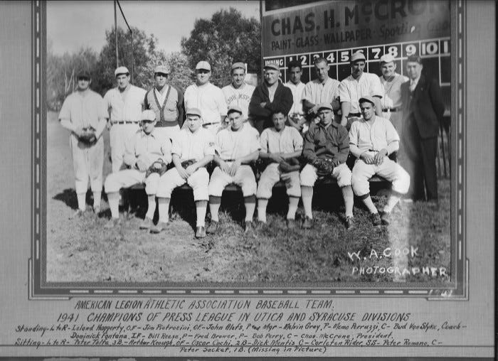 This past October, I finally found out (via Facebook) that my dad had a chance to attend a tryout for the New York Yankees. I knew he was a good athlete since he always pushed me to play sports throughout my childhood. He talked long and passionate about the old days and how good the ballplayers were from his small hometown of St. Johnsville, New York. My dad graduated from High School and was playing football at Hartwick College in the fall of 1941. As you can expect, his dreams of playing baseball were cut short by the attack on Pearl Harbor. He was actually hitchhiking back to college that Sunday morning in early December.