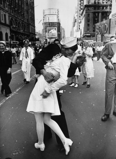 Iconic Photograph: VJ Day is also remembered for this iconic photograph, "V-J Day in Times Square," showing a sailor kissing a nurse, which became a symbol of the end of the war and the joy it brought.